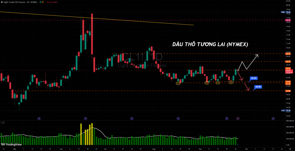 Biểu đồ giá dầu WTI trên sàn Nymex khung thời gian D1 ngày 25/09/2025.